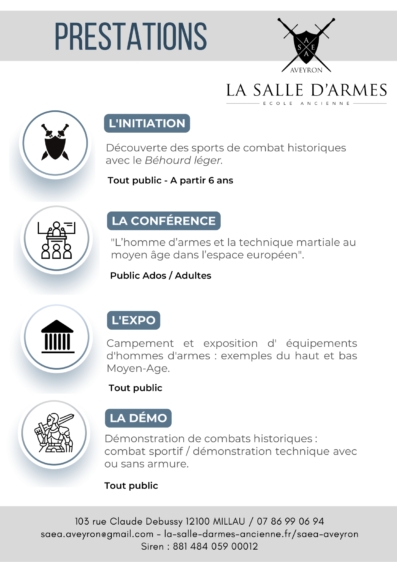 Lieu : La Salle d’Armes École Ancienne ou en extérieur