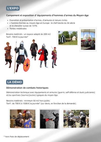 Pour les plus téméraires, équipez-vous d’une véritable armure en acier ou en titane, dégainez votre épée et découvrez une expérience unique de combat médiéval !